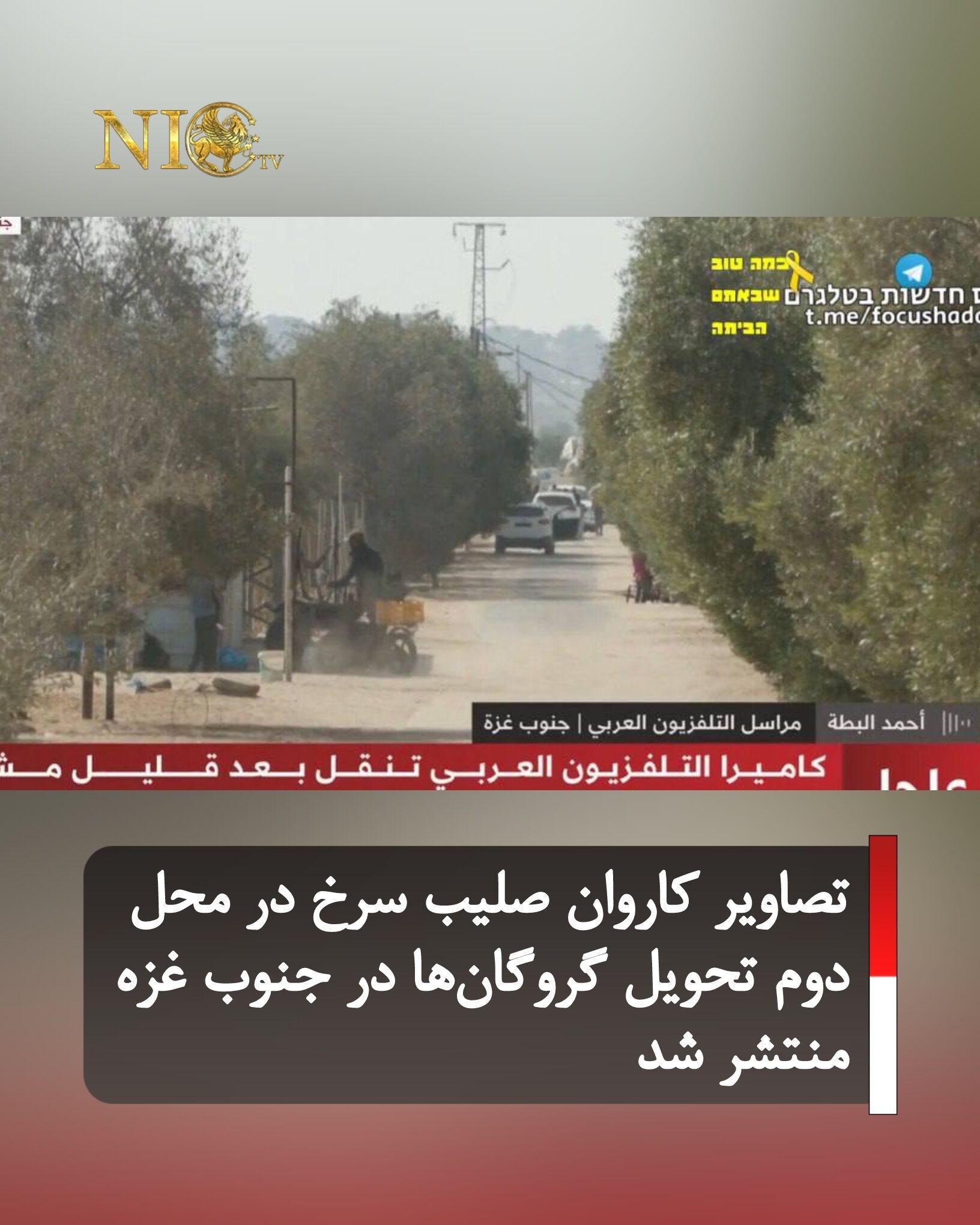نشریه «العربی» تصاویری از کاروان صلیب سرخ منتشر کرد که به دومین نقطه تحویل گروگان‌ها در نوار جنوبی غزه رسیده است.