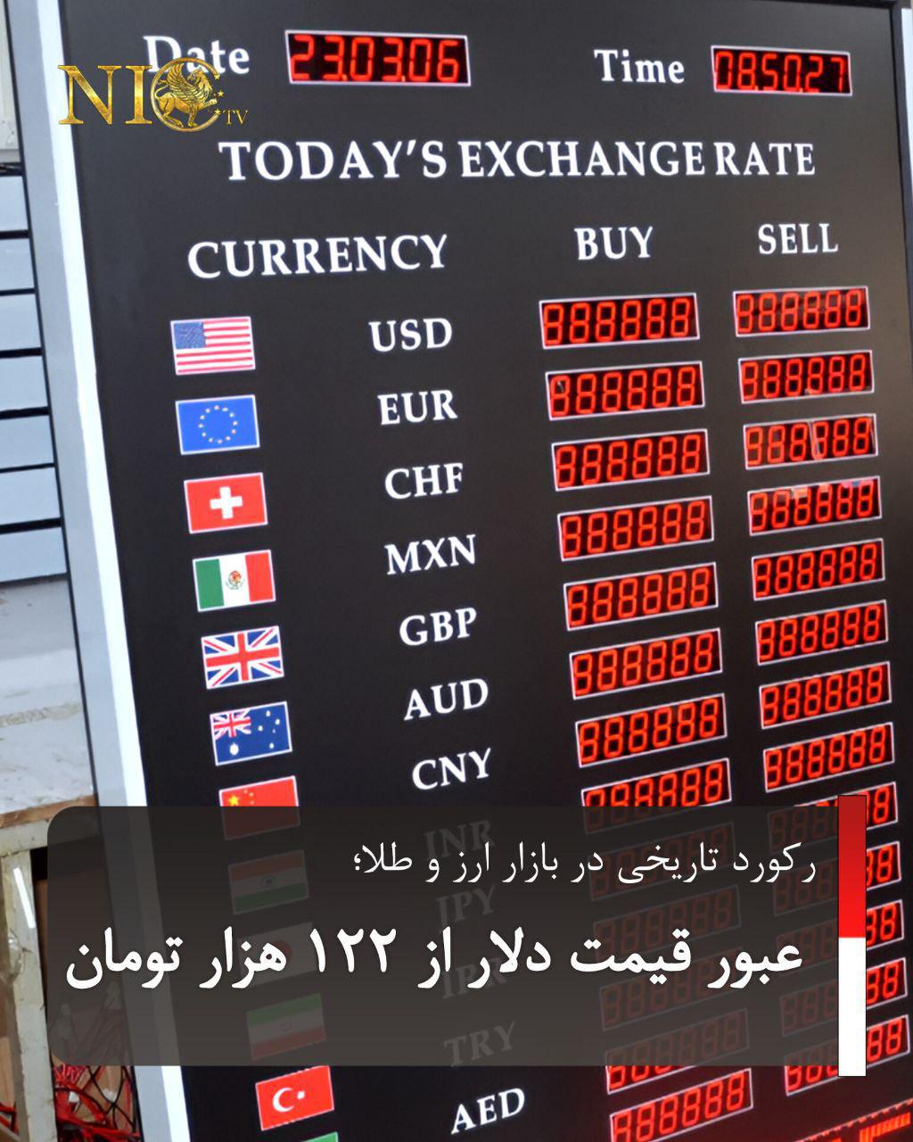 در ادامه روند صعودی بازار ارز و طلا در ایران، نرخ دلار آمریکا در معاملات روز شنبه بازار آزاد برای نخستین بار در تاریخ ایران از مرز ۱۲۲ هزار تومان عبور کرد.